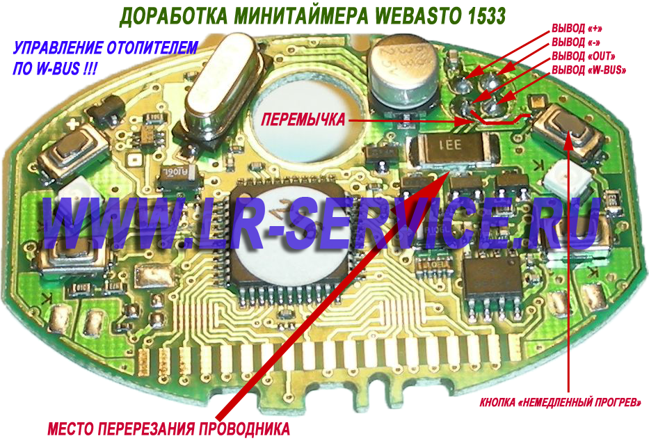 Для случая управления отопителями с потенциальным управлением (Thermo Top C/Z/E/P) необходимо оставить вывод "OUT", а переделывать вывод "W-Bus". Проводник от вывода "W-Bus" в этом случае лучше перерезать непосредственно у вывода "W-Bus".